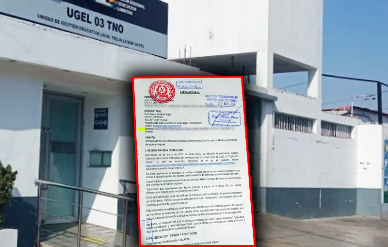 EL PORTAL DIGITAL «PANDEMONIO» RECTIFICA INFORMACIÓN SOBRE EL SR. JUAN MANUEL RODRÍGUEZ MALQUI En cumplimiento de la Ley N.º 26775 y en atención a la carta notarial recibida el 27 de marzo de 2026, el portal digital Pandemonio procede a rectificar la información difundida el pasado 23 de marzo de 2026 en la nota titulada: […]