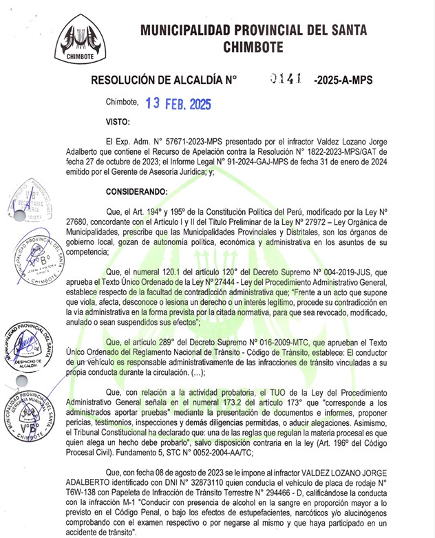 Jorge Adalberto Valdez Lozano, asesor del alcalde provincial de Trujillo, Mario Reyna, y figura pública en la denuncia sobre una presunta red de anulación de papeletas en la MPT, logró anular una grave sanción de tránsito impuesta en 2023 por conducir en estado de ebriedad en el Santa, Chimbote. La medida lo libró de una multa de S/. 4,950.00 y la cancelación definitiva de su licencia, y se concretó el 13 de febrero de 2025.