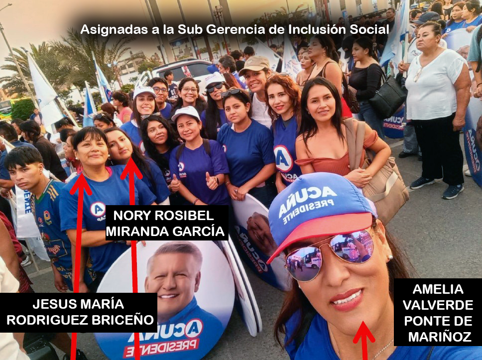 Unidad de Investigación Pandemonio.- Un grupo de trabajadores contratados bajo la modalidad de locación de servicios en la Gerencia Regional de Desarrollo e Inclusión Social (GRDIS) del Gobierno Regional de La Libertad estaría participando activamente en actividades vinculadas a la campaña política denominada “Acuña Presidente 2026”. La información, revisada por la Unidad de Investigación Pandemonio, incluye fotografías, registros de asignación laboral, y capturas de conversaciones de WhatsApp que evidenciarían la articulación de personal contratado por el Estado en actividades políticas.